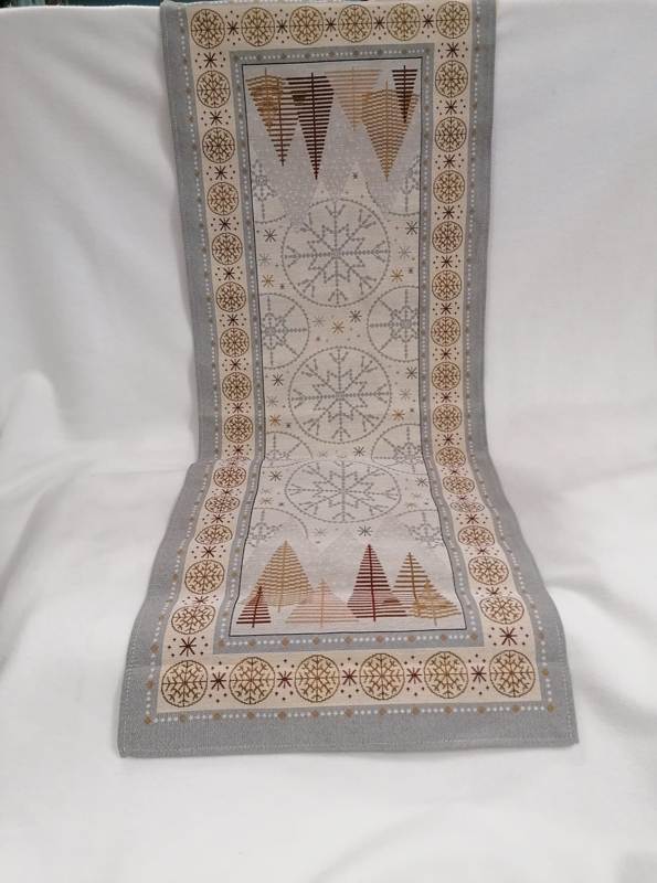 - Gobelínový ubrus chenille - Vánoční stromy šedé 40 x 100 cm