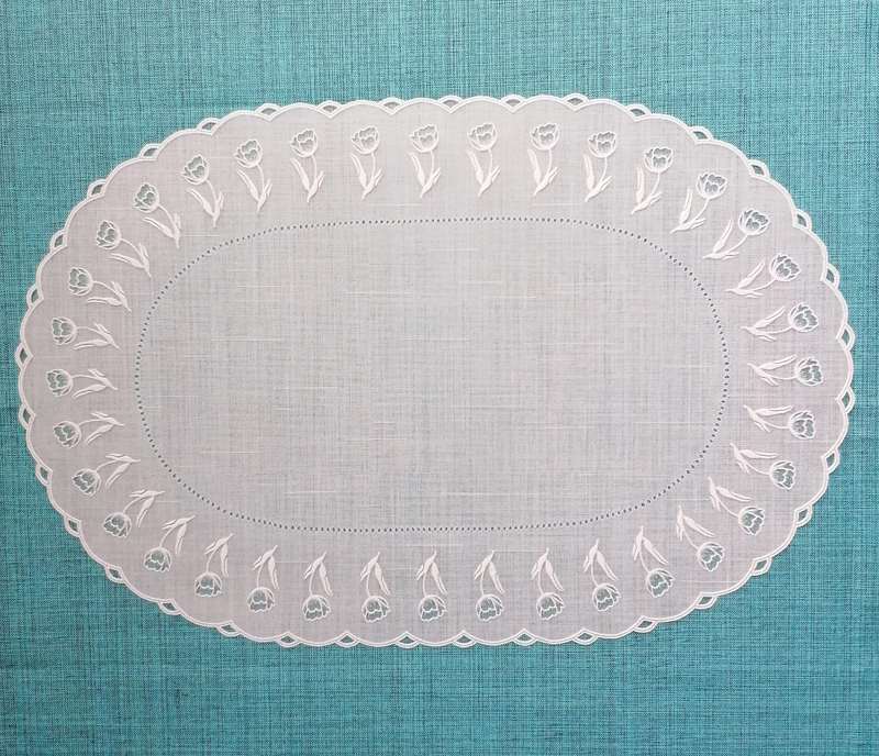 Prostírání - PVC ovál bílé průhledné tulipánySkladem60 Kč/ ks50 Kč bez DPH